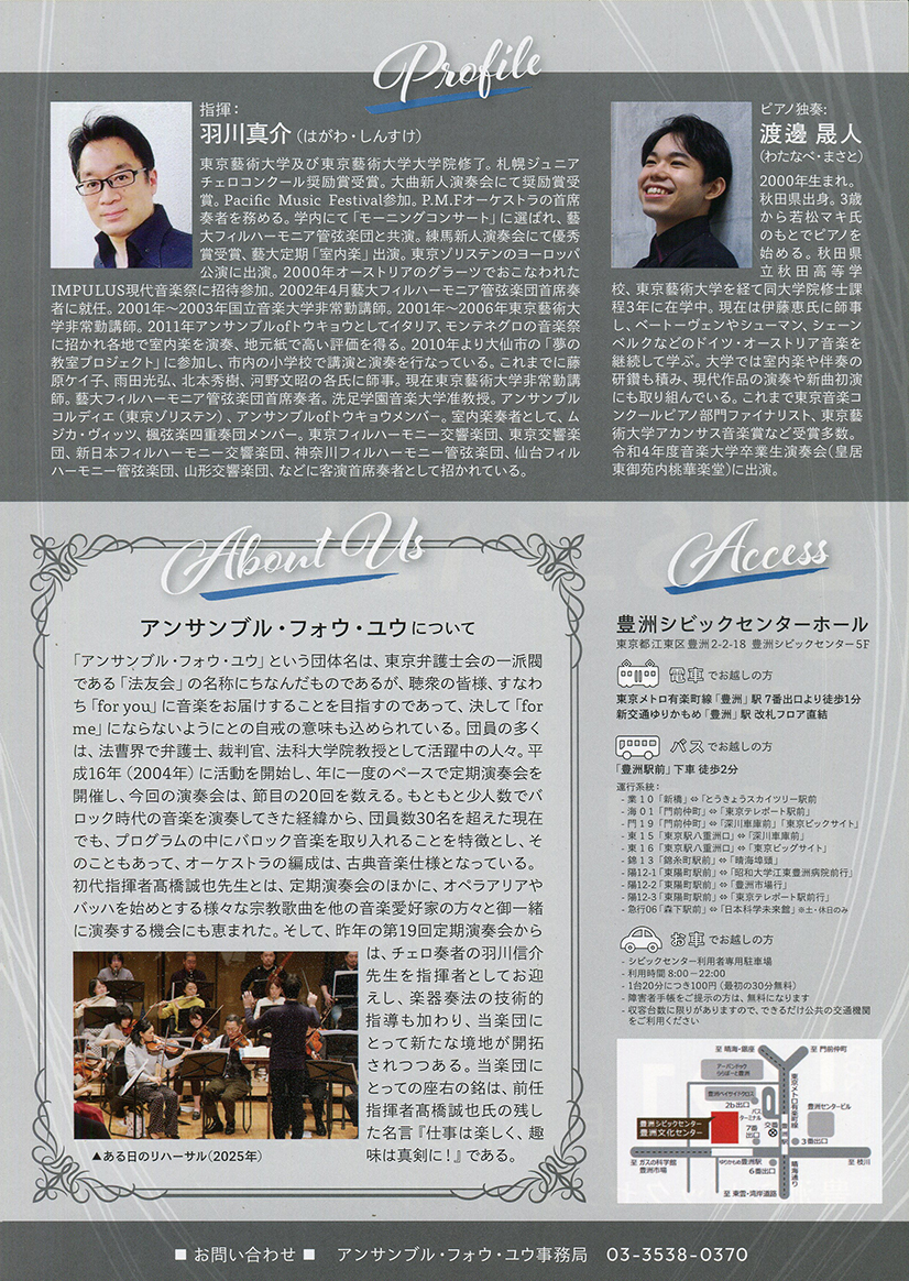 お問い合わせはアンサンブル・フォウ・ユウ事務局 03-3538-0370 までお願いいたします。